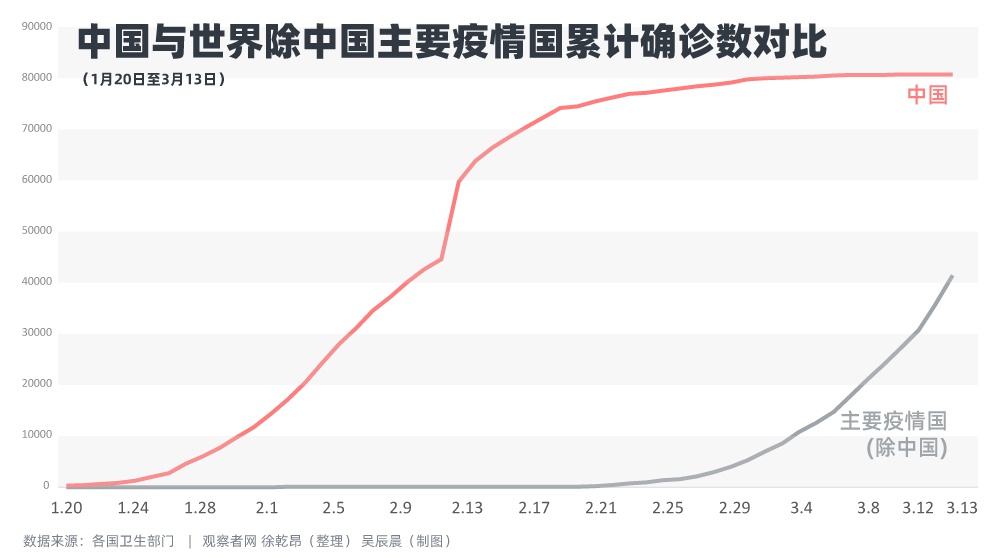 [文/观察者网 徐乾昂]新冠肺炎疫情在全球发展至今,中国累计确诊数已经基本趋于缓和。中国给全世界争取了宝贵的30多天,但各大洲依旧相继“失守”。从数据上可以直观感受到,中国控制住疫情之际,全球各地的疫情则开始爆发。
