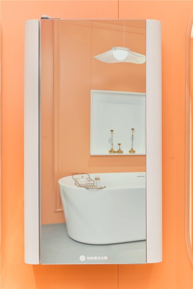 镜柜内部的美妆镜背收纳3.0系统,巧妙利用镜后空间,打造“可视化”智能收纳区。不同高度的护肤品、化妆品可有序直立摆放,随用随取。抽纸孔隐藏于镜柜侧边,取用便捷且防尘防潮。