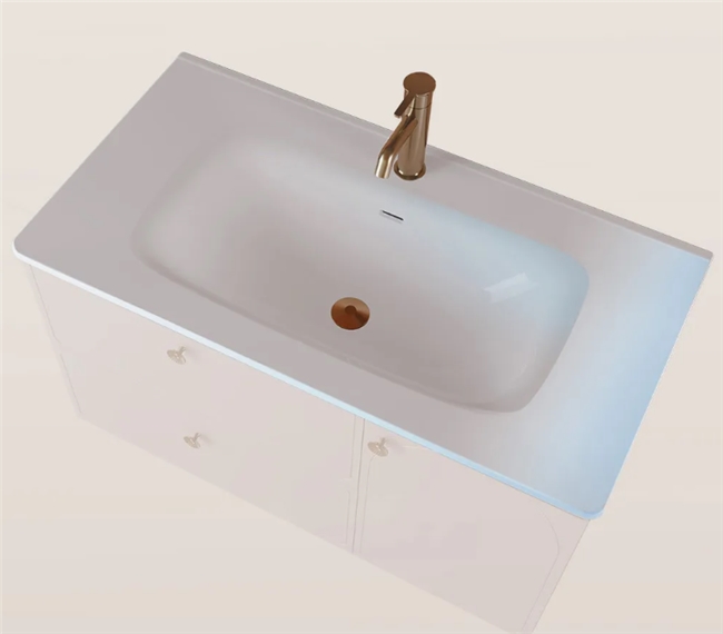 这款陶瓷盆的亲水角<23°(普通釉面约40°),污渍不易附着,牙膏渍清水一冲就净,加深盆胆设计有效防溅水,配合宽阔置物台,洗漱用品摆放井然有序,兼顾美观与实用。